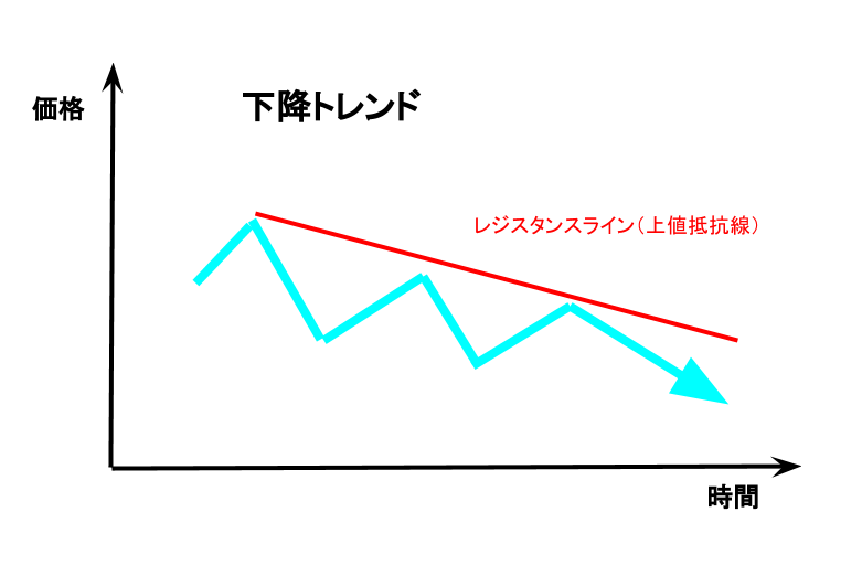 チャートが、右肩下がりに下降している状態を下降トレンドといいます。