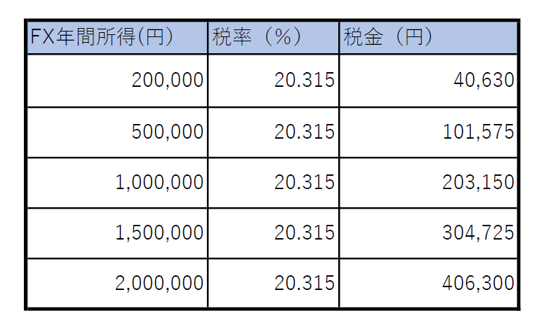 FXで出た利益には、金額に関係なく一律20.315%の税金がかかります。