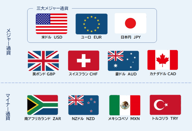 また、FXで取引する通貨には、メジャー通貨とマイナー通貨があります。