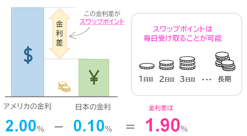スワップポイントは通貨を保有している間、毎日受け取ることができます。