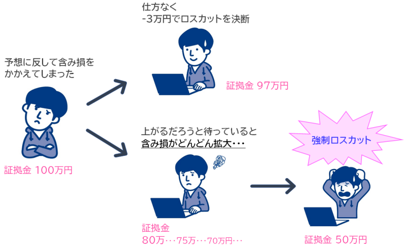 含み損で決済することを「ロスカット」「損切り」といいます。